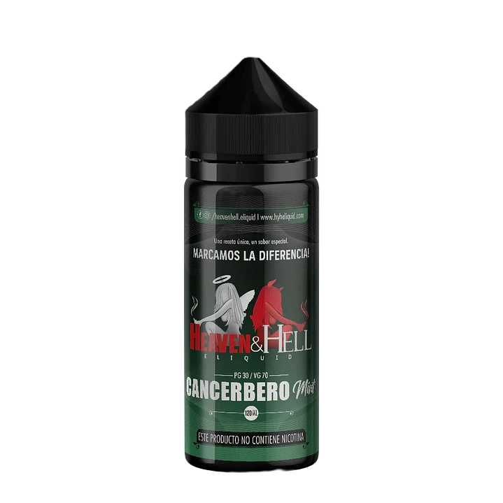 Heaven & Hell Cancerbero Mint 120ml. Disfruta de una menta potente y profunda que domina cada calada. Diseñado para quienes buscan un golpe de frescura intenso, duradero y sin complicaciones. Ideal para vapear todo el día sin cansar el paladar.