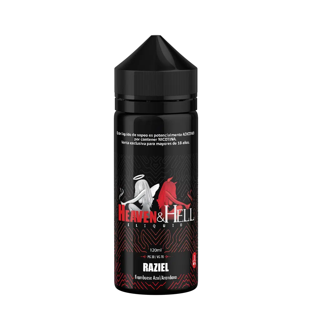 Heaven & Hell Raziel 120ml, ofrece una experiencia de vapeo intensa y enigmática, combinando el sabor profundo de la mermelada de arándanos con la frescura vibrante de la frambuesa azul. Esta fusión frutal se completa con una tercera fruta secreta que añade un toque intrigante y seductor, desafiando tus sentidos en cada calada.