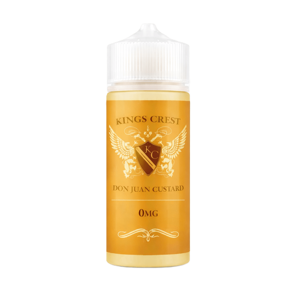 Kings Crest Don Juan Custard 120ml, un postre clásico hecho vape. Don Juan Custard mezcla la base de tarta de pecanas con un custard cremoso, toques de vainilla y caramelo que redondean un perfil dulce con mucho cuerpo, sin empalagar. Ideal para quienes aman los “dessert vapes” profundos y sedosos, con una exhalación larga y satisfactoria.